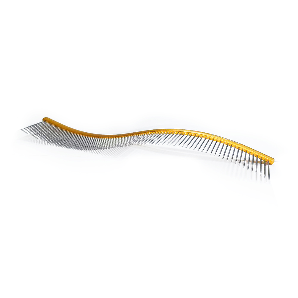 Имеет разные интервалы между зубцами , что позволяет адаптироваться к разной текстуре шерсти. Идеально подходит для ежедневного ухода, конкурсной работы и выставок. Так же подходит для повседневного использования на большинстве пород собак и кошек. Облегченный материал, гибкие, упругие зубцы.