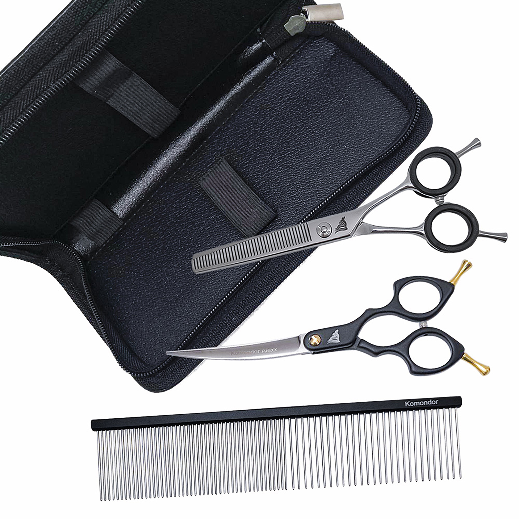 Набор Komondor ножницы Alexx 35/38 + гребень и чехол малый, KA2